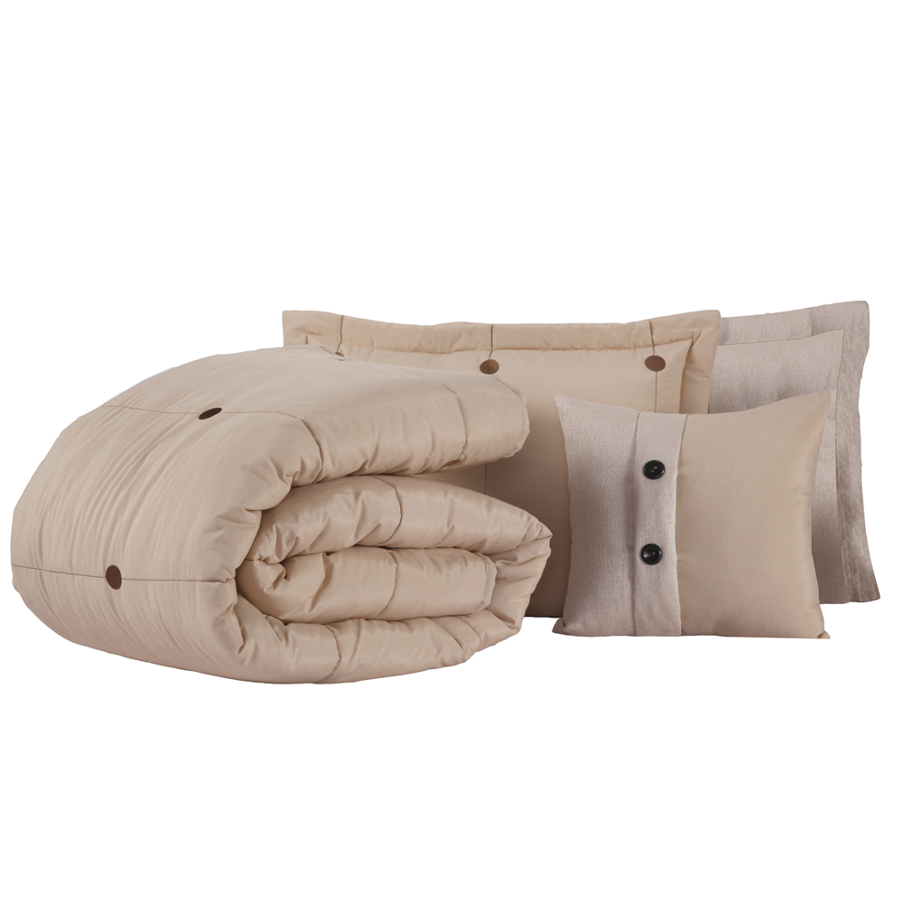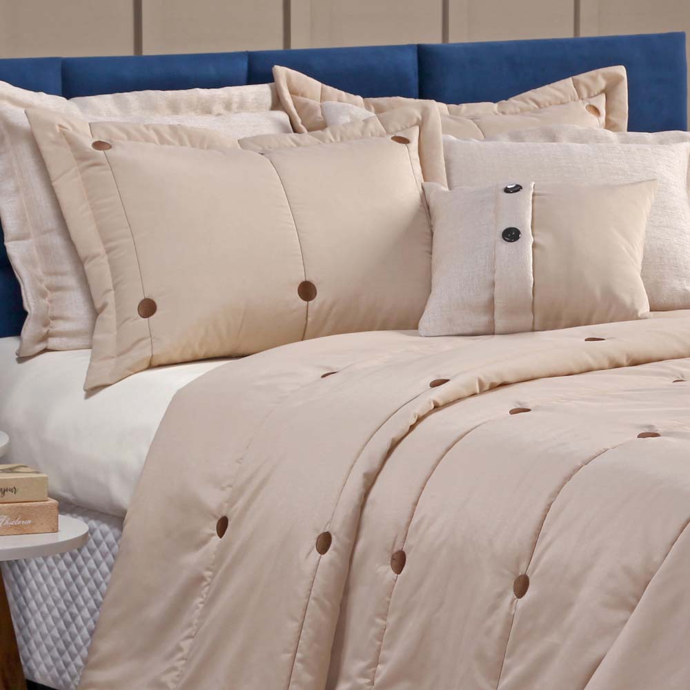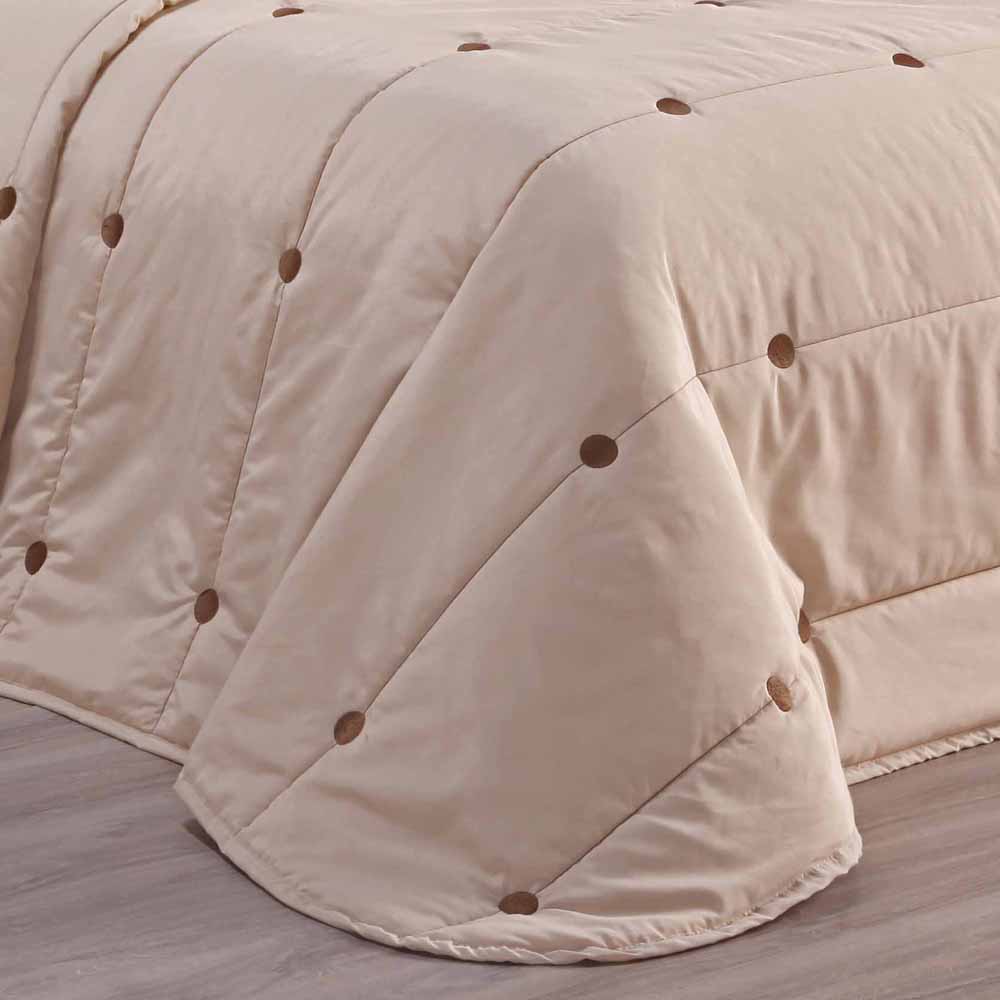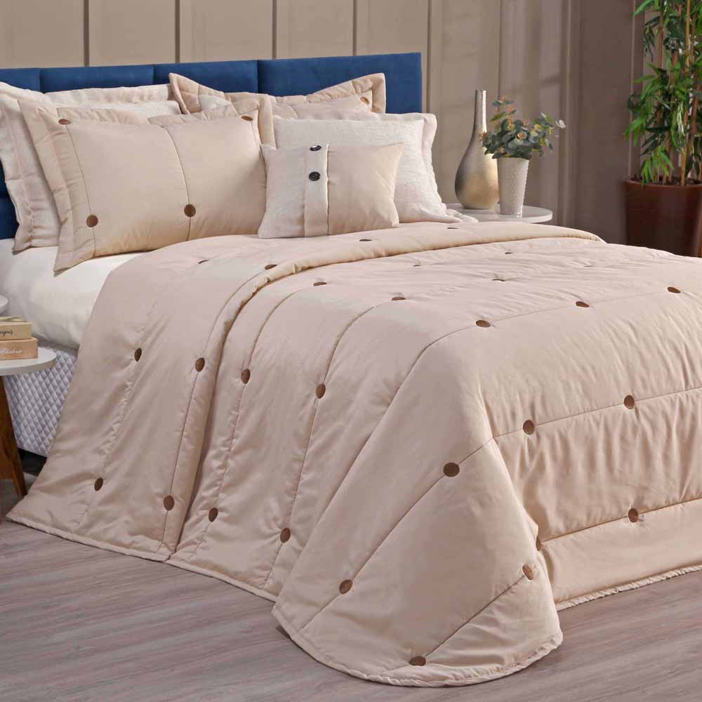 Kit Cobre Leito Colcha Button Queen 200 Fios Bordado 7 Peças - Avelã