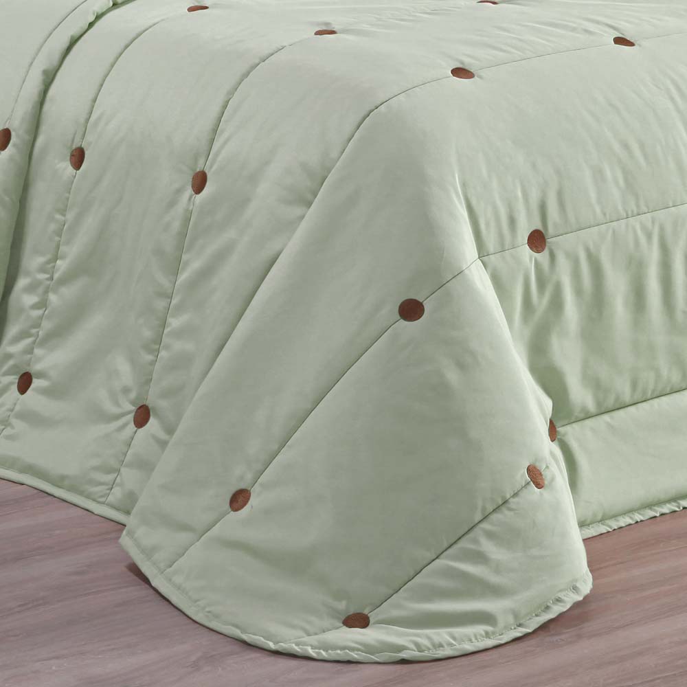 Kit Cobre Leito Colcha Button Queen 200 Fios Bordado 7 Peças - Verde