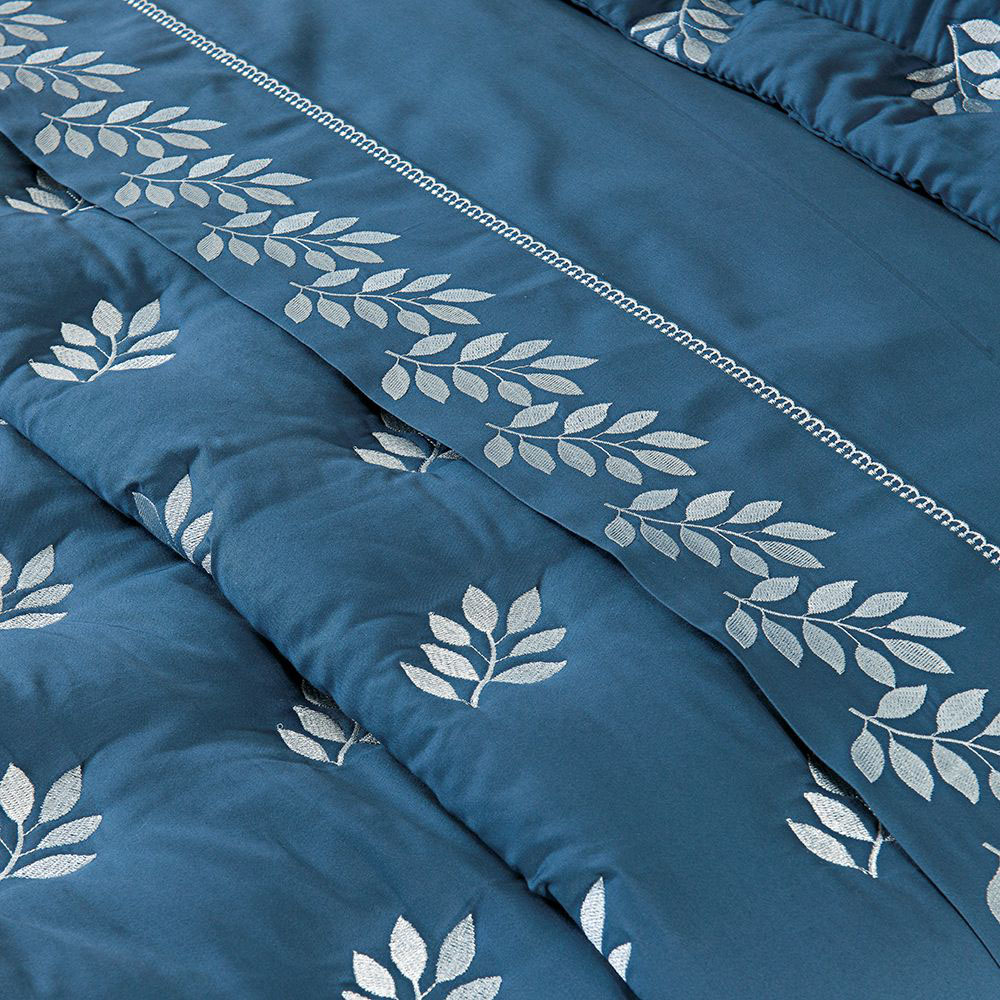 Kit Cobre Leito Colcha Garland Queen 100% Algodão 400 Fios Acetinado Bordado 5 Peças - Azul Marinho