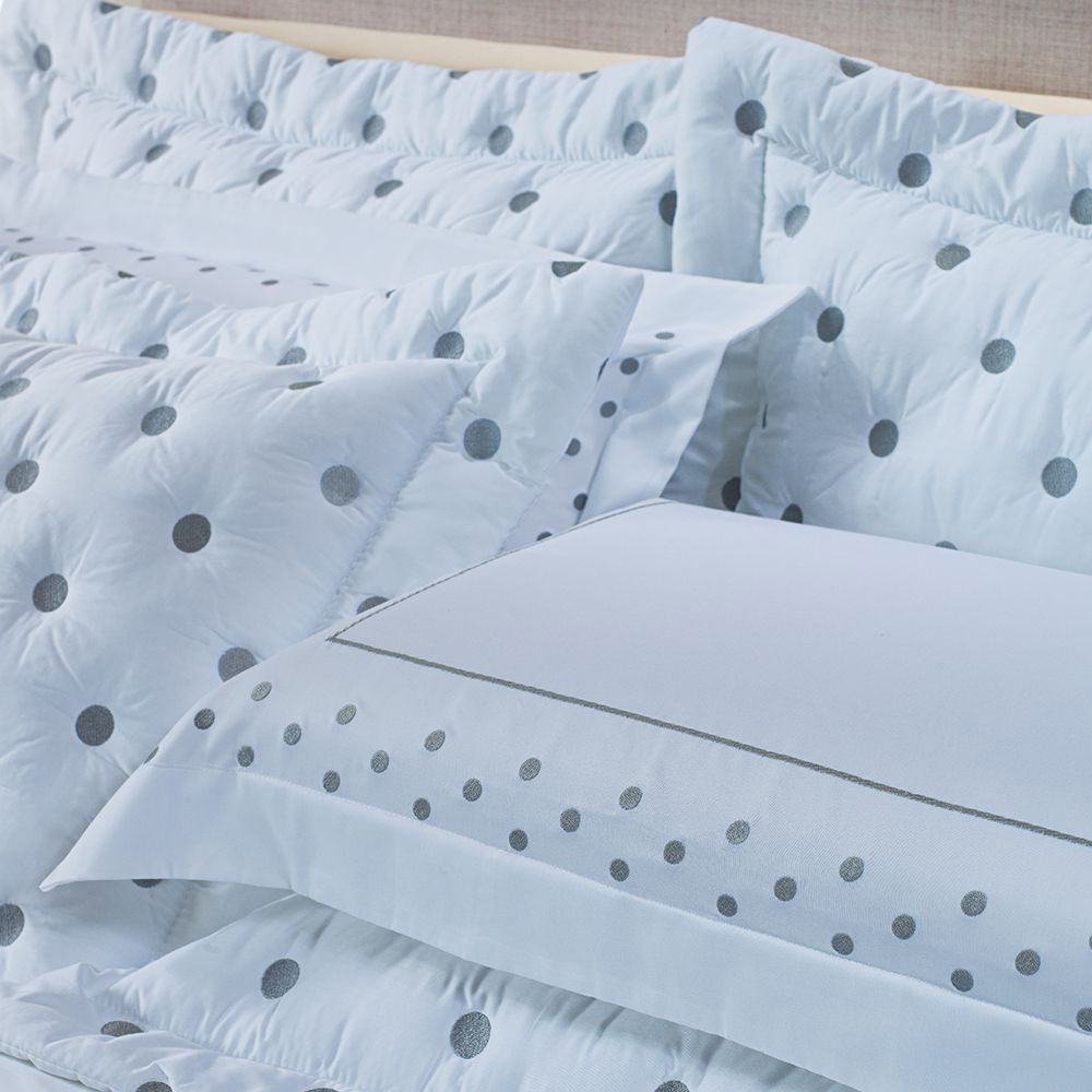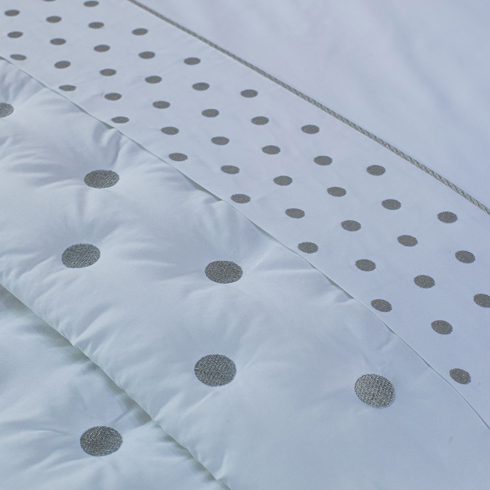 Kit Cobre Leito Colcha Garland Super King 100% Algodão 400 Fios Acetinado Bordado 5 Peças - Branco e Cinza