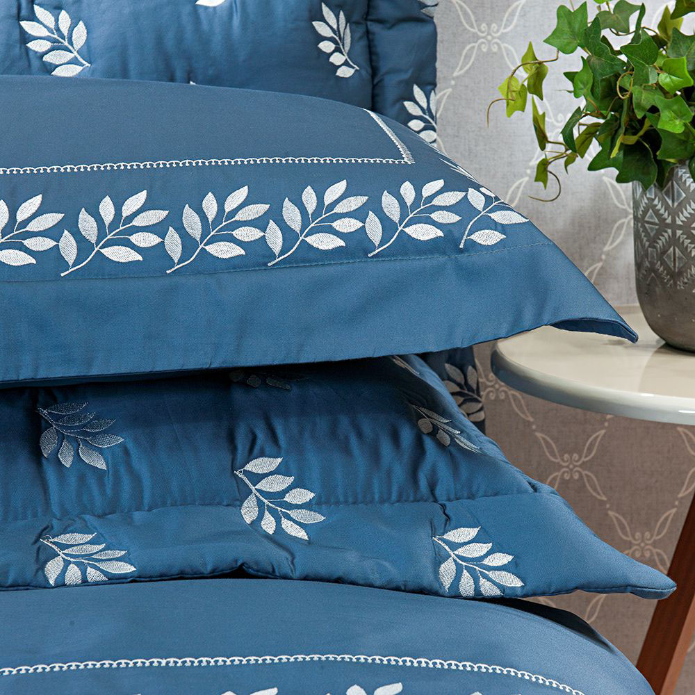 Jogo Cama Lençol Garland Casal Bordado 100% Algodão Acetinado 400 Fios 4 Peças - Azul Marinho