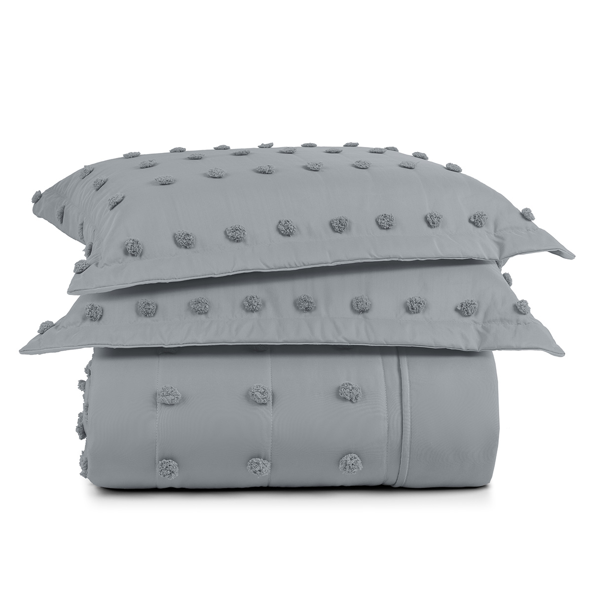 Kit Cobre Leito Colcha Alexa Pompom King Dupla Face Micropercal 3 Peças - Cinza