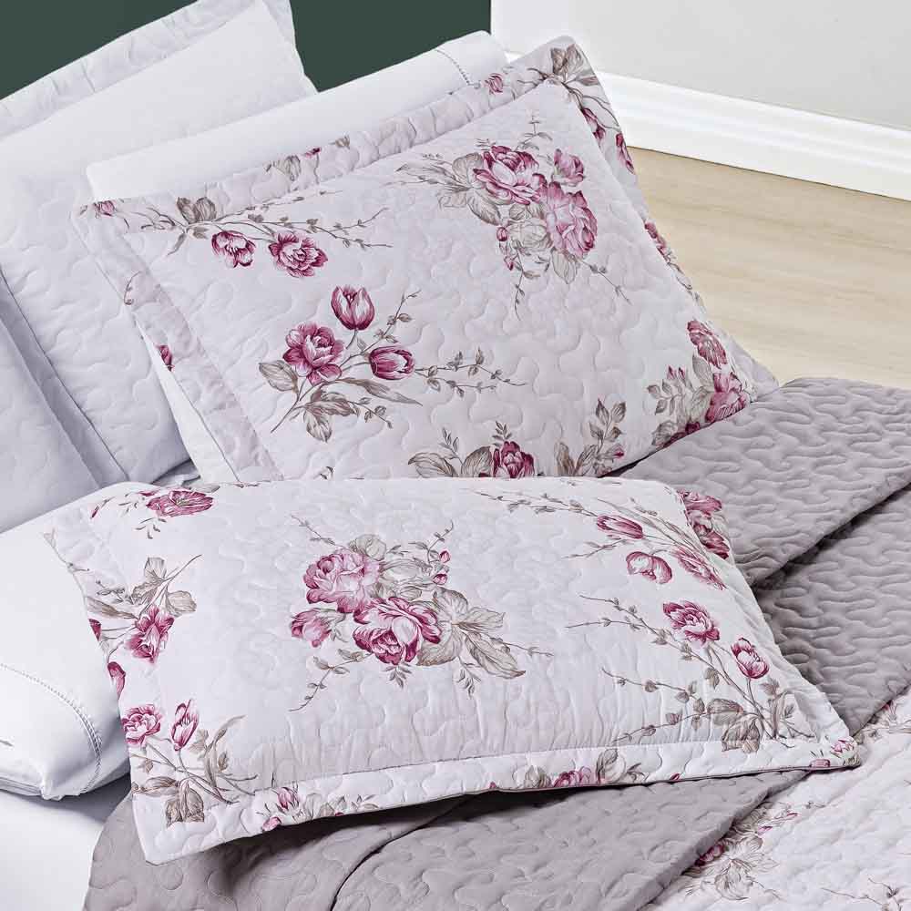 Kit Cobre Leito Colcha Celi Queen Dupla Face Micropercal 200 Fios 3 Peças - Palha Florido