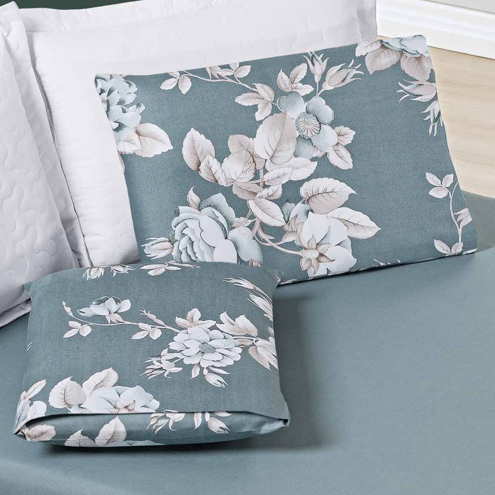 Jogo Cama Lençol Celi Casal Padrão Micropercal 200 Fios 3 Peças - Verde Floral