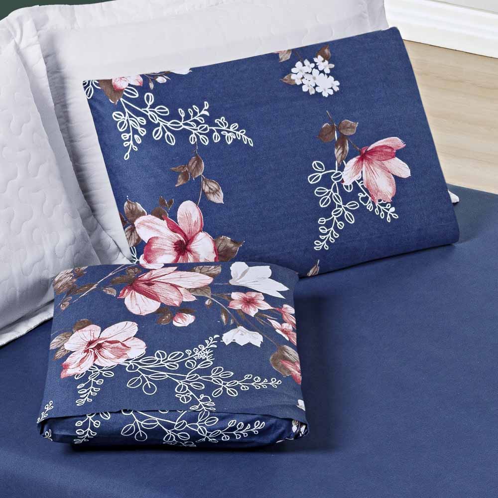 Jogo Cama Lençol Celi Queen Micropercal 200 Fios 3 Peças - Azul Marinho Floral