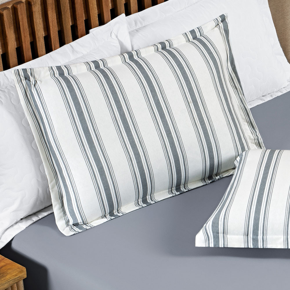Jogo Cama Lençol Daily Solteiro Malha Algodão Listrado 2 Peças - Cinza