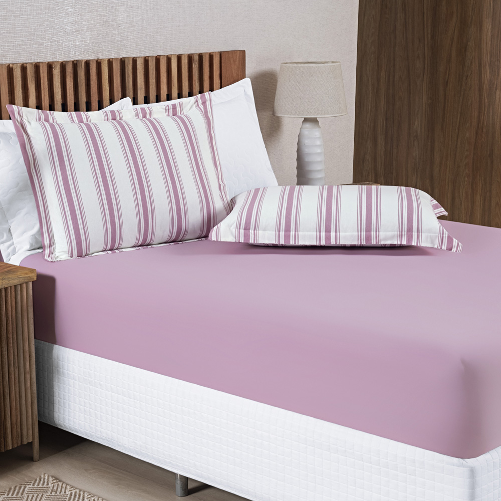 Jogo Cama Lençol Daily Casal Padrão Malha 100% Algodão Listrado 3 Peças - Rosê