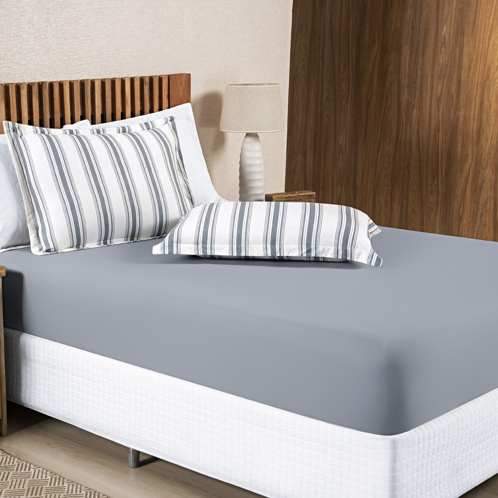 Jogo Cama Lençol Daily Queen Malha Algodão Listrado 3 Peças - Cinza