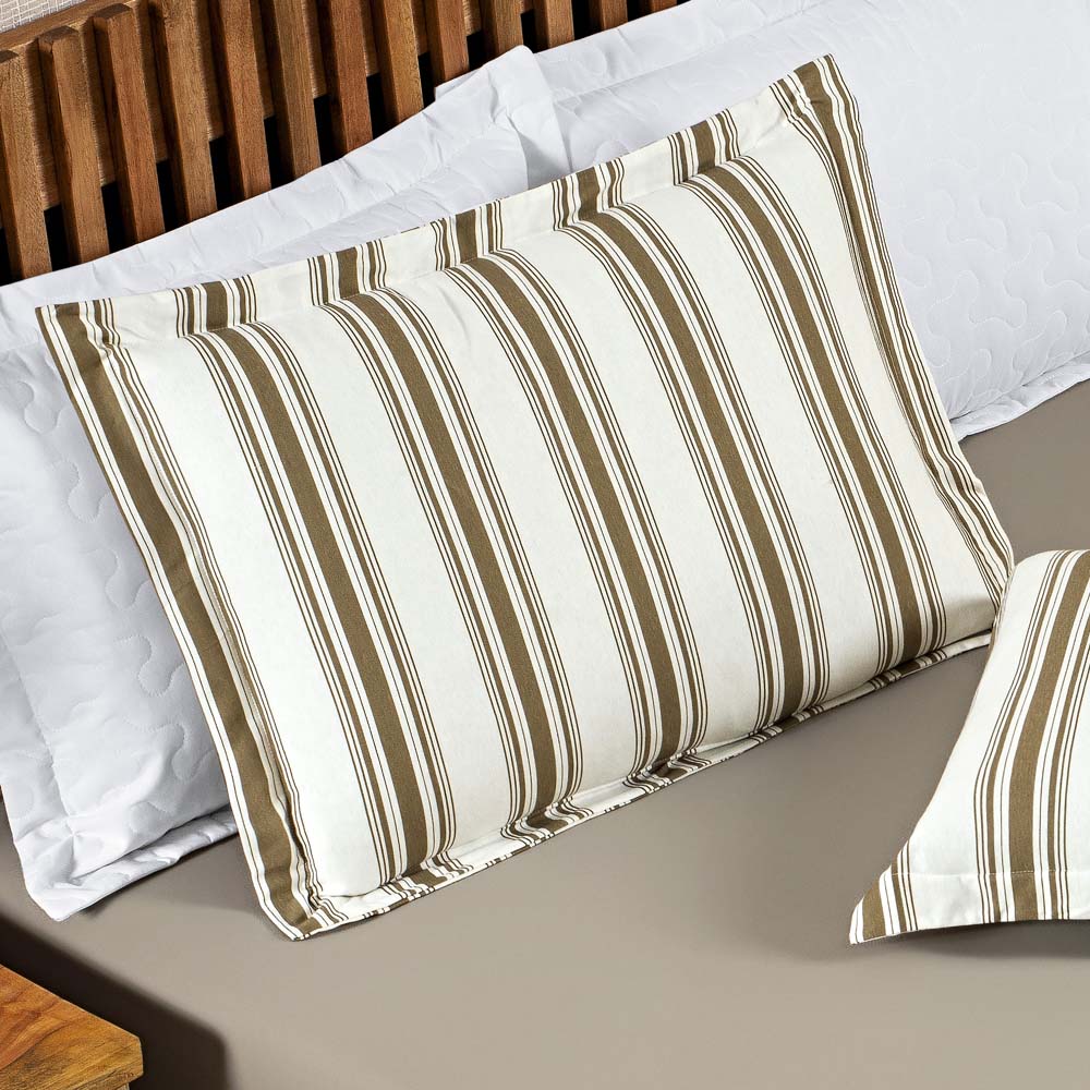 Jogo Cama Lençol Daily Casal Padrão Malha 100% Algodão Listrado 4 Peças - Bege