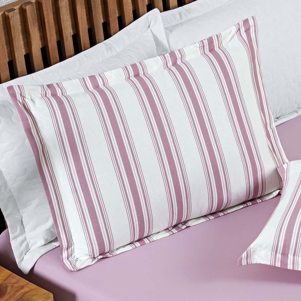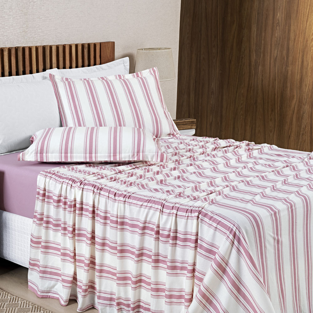 Jogo Cama Lençol Daily King Malha Algodão Listrado 4 Peças - Rosê