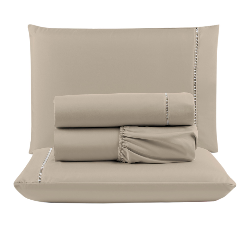 Kit c/ 4 Jogos Cama Lençol Unique Casal Padrão Micro Percal 400 Fios Ponto Palito 4 Peças - Avelã + Palha