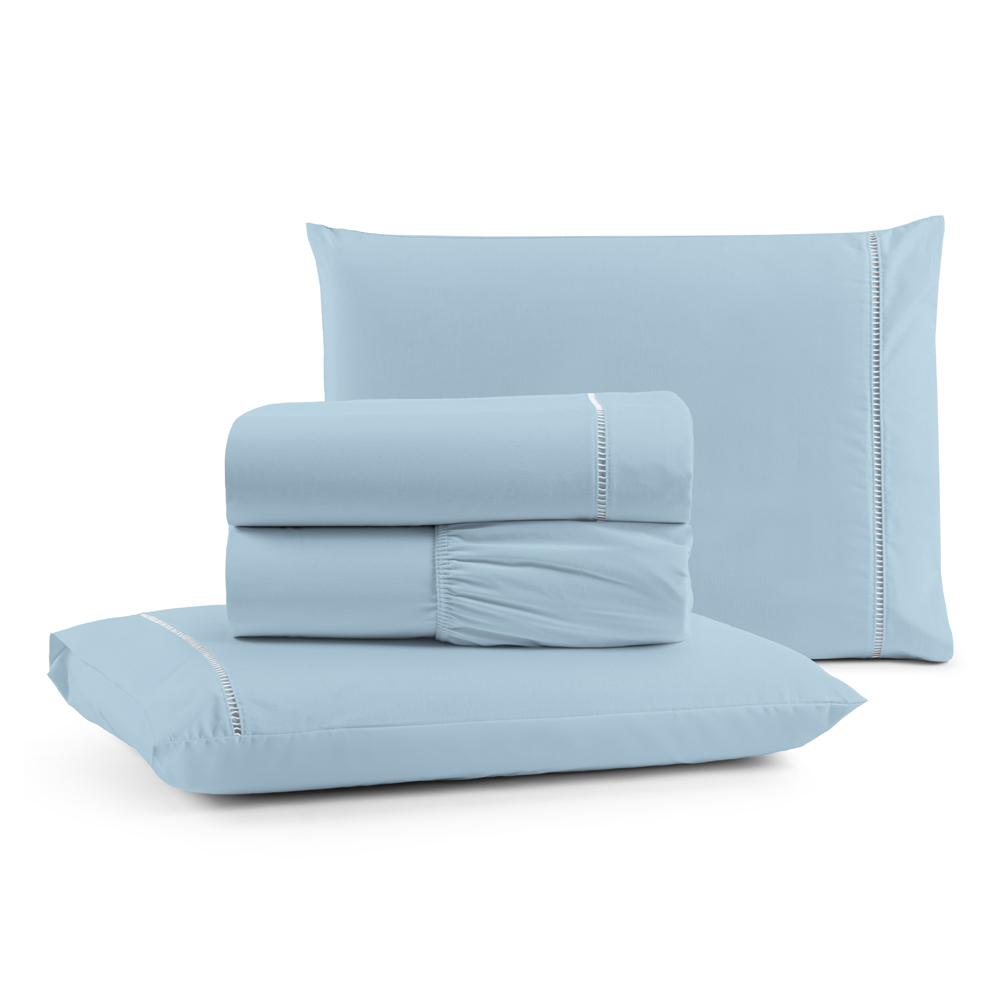 Jogo Cama Lençol Bali Casal Padrão Percal 180 Fios 100% Algodão Ponto Palito 4 Peças - Azul Claro