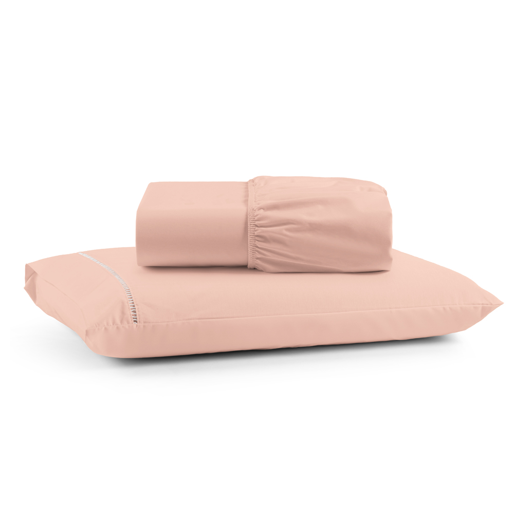 Jogo Cama Lençol Bali Solteiro Percal 180 Fios 100% Algodão Ponto Palito 2 Peças - Salmão