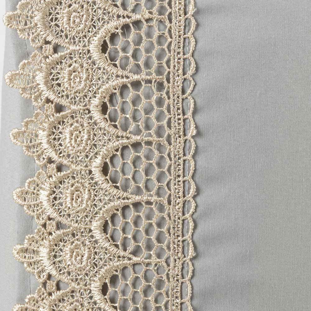 Jogo Cama Lençol Haia Solteiro Percal 200 Fios Algodão Guipir Bordado Inglês 2 Peças - Cinza