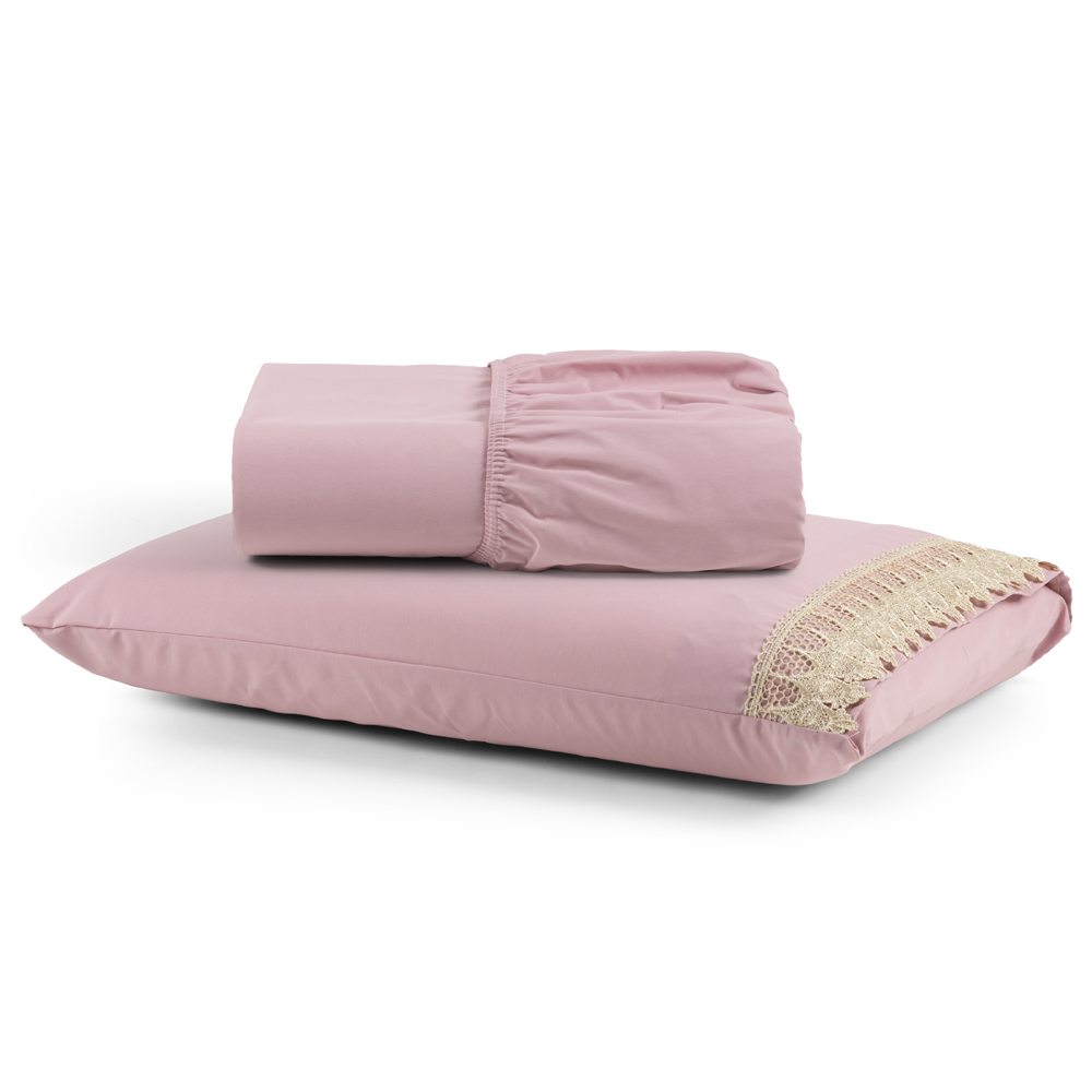 Jogo Cama Lençol Haia Solteiro Percal 200 Fios Algodão Guipir Bordado Inglês 2 Peças - Rosê