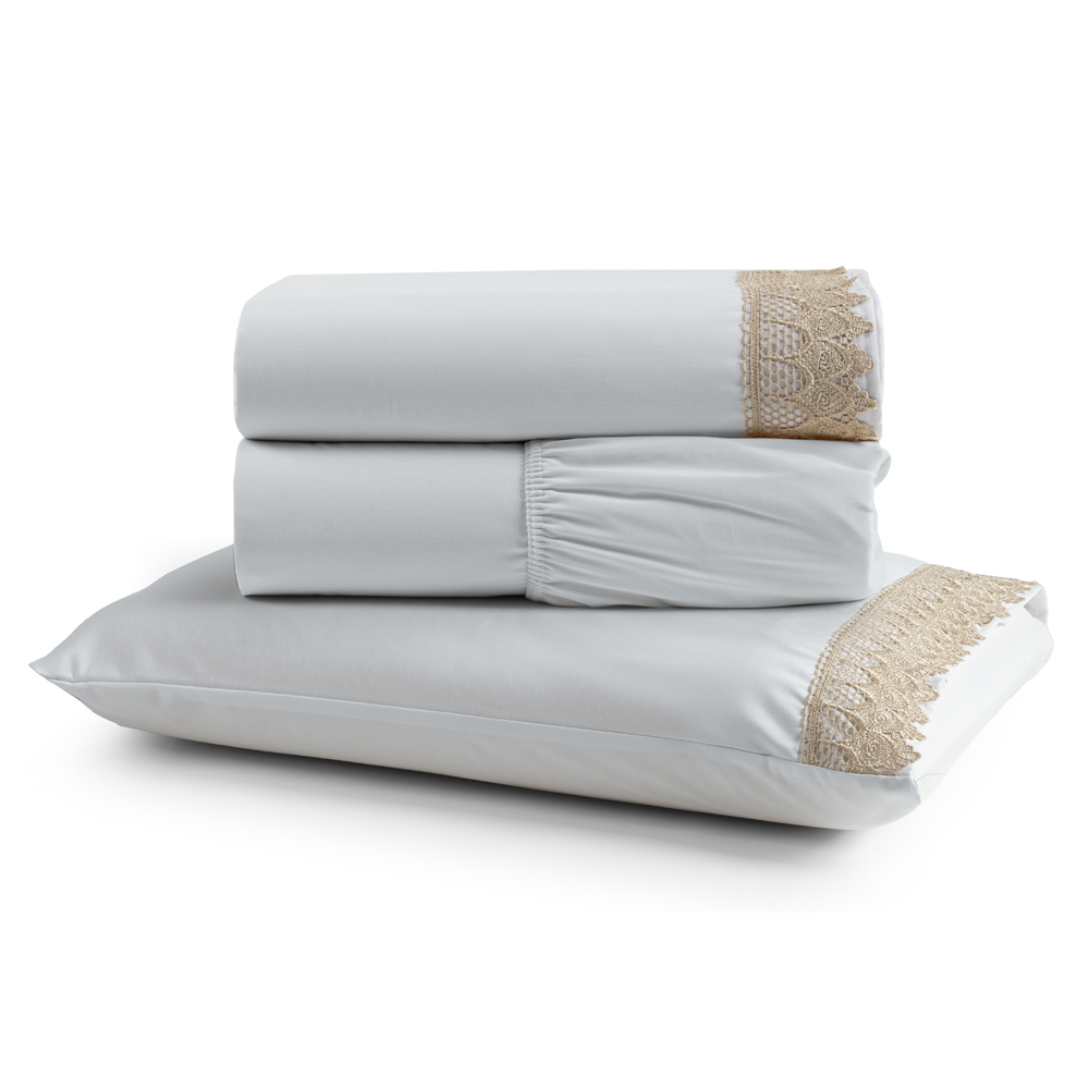 Jogo Cama Lençol Haia Solteiro Percal 200 Fios Algodão Guipir Bordado Inglês 3 Peças - Branco