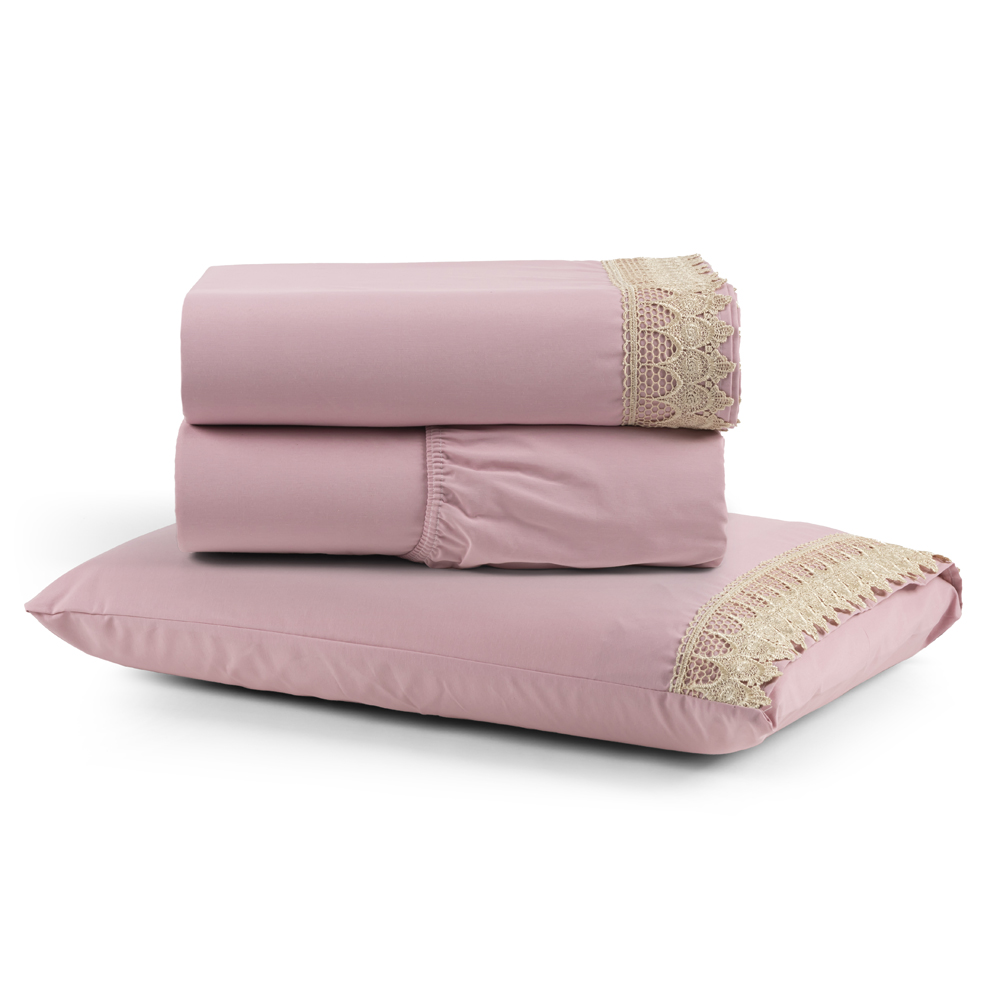 Jogo Cama Lençol Haia Solteiro Percal 200 Fios Algodão Guipir Bordado Inglês 3 Peças - Rosê