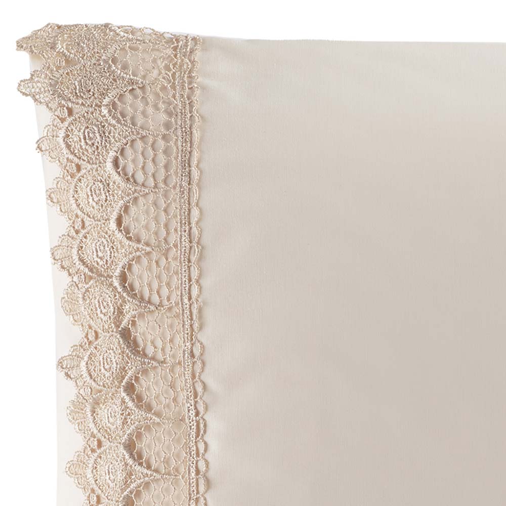 Jogo Cama Lençol Haia Casal Padrão Percal 200 Fios Algodão Guipir Bordado Inglês 4 Peças - Palha