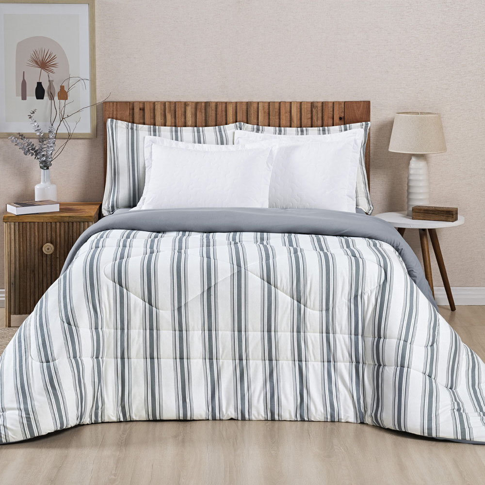 Edredom Cobertor Daily Super King Malha Listrado Dupla Face Fio Penteado - Cinza