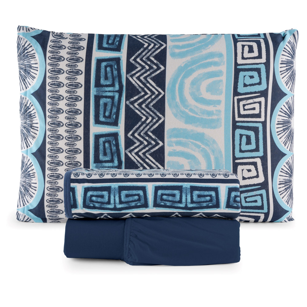 Jogo Cama Lençol Sonnet Solteiro Malha Estampada 100% Algodão 3 Peças - Geométrico - Azul Marinho