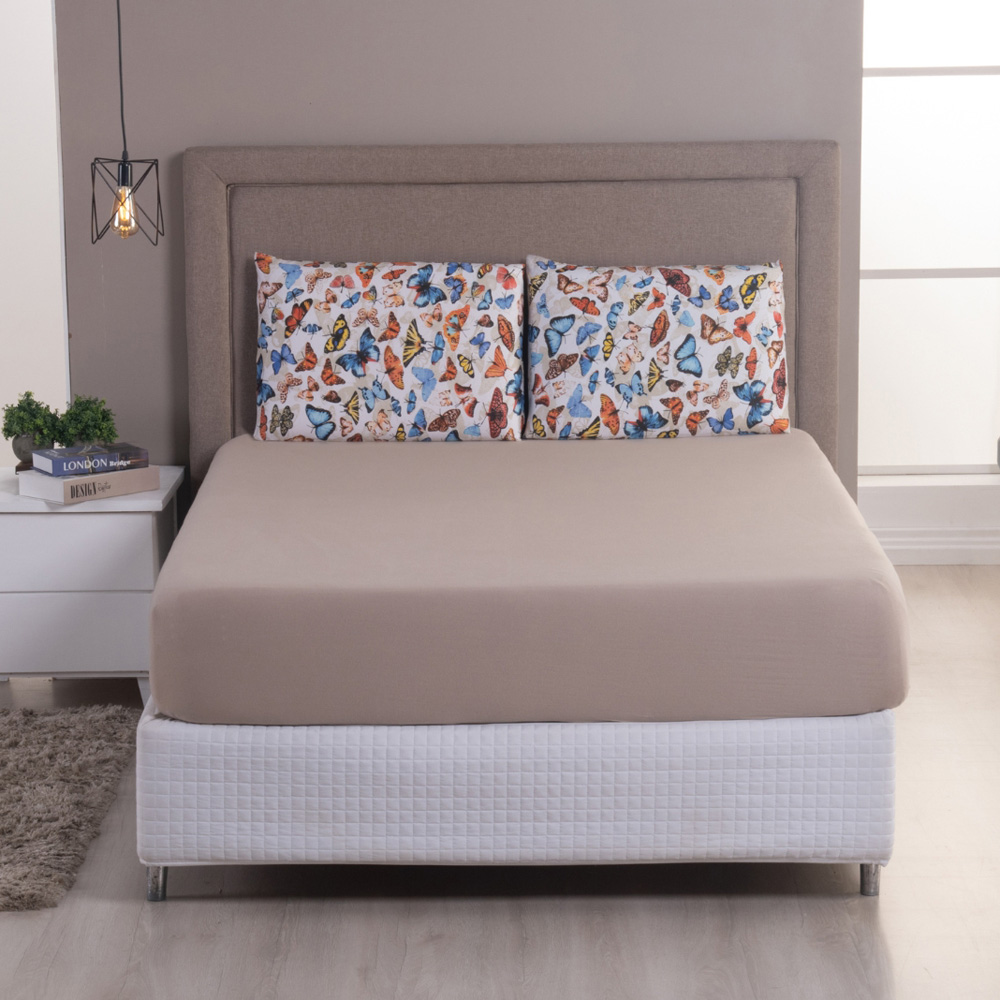 Jogo Cama Lençol Sonnet Casal Padrão Malha Estampada 100% Algodão 3 Peças - Borboletas - Bege