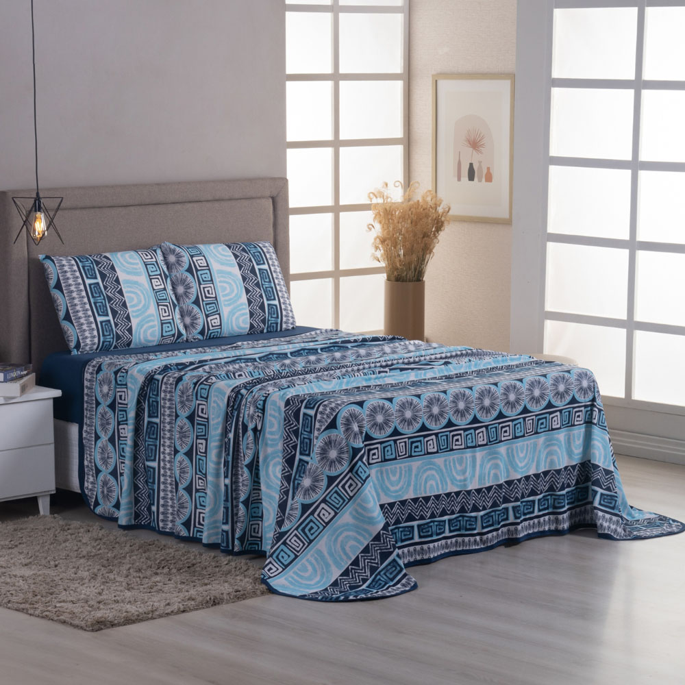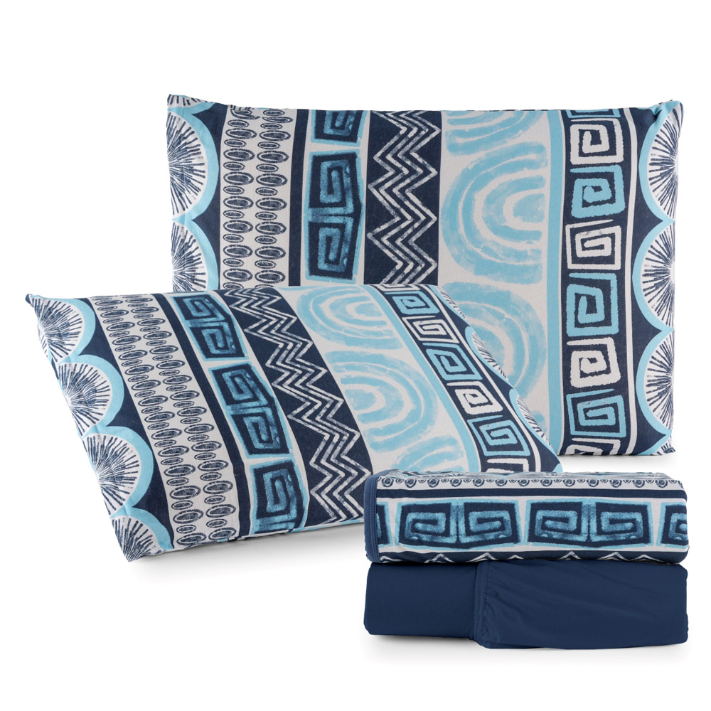 Jogo Cama Lençol Sonnet Queen Malha Estampada 100% Algodão 4 Peças - Geométrico - Azul Marinho