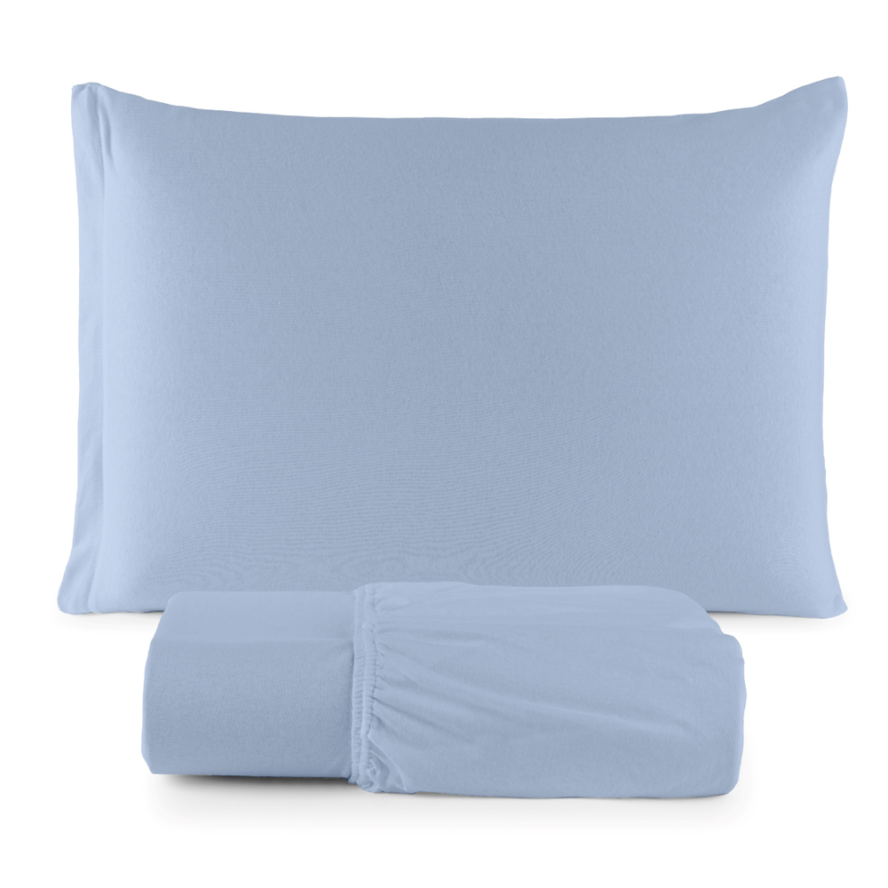 Jogo Cama Lençol Sonnet Solteiro Malha Lisa 100% Algodão Macio 2 Peças - Azul Claro