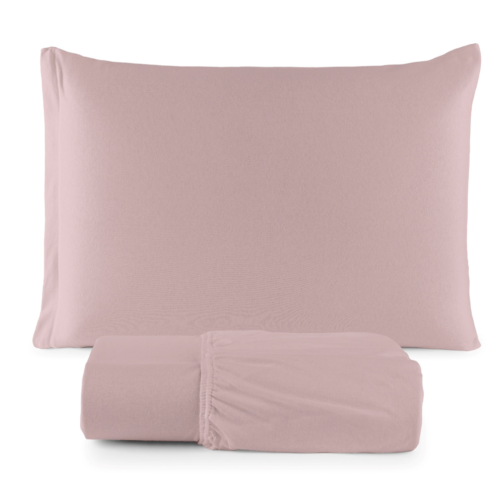 Jogo Cama Lençol Sonnet Solteiro Malha Lisa 100% Algodão Macio 2 Peças - Rosê