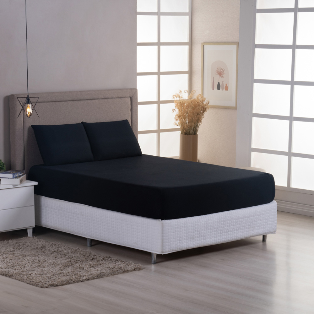 Jogo Cama Lençol Sonnet Casal Padrão Malha Lisa 100% Algodão Macio 3 Peças - Preto