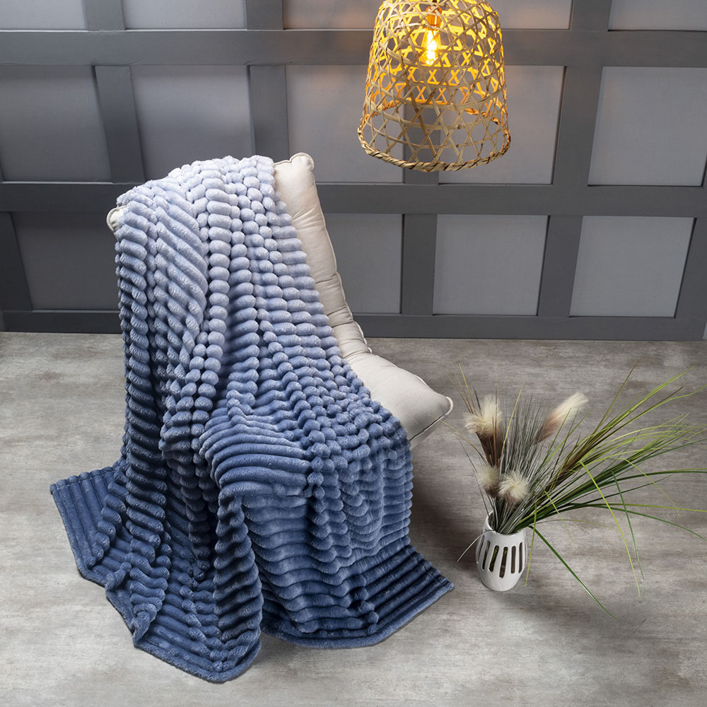 Cobertor Galaxy Queen Manta Ultrasoft Alto Relevo Degradê Super Macia - Sky - Azul