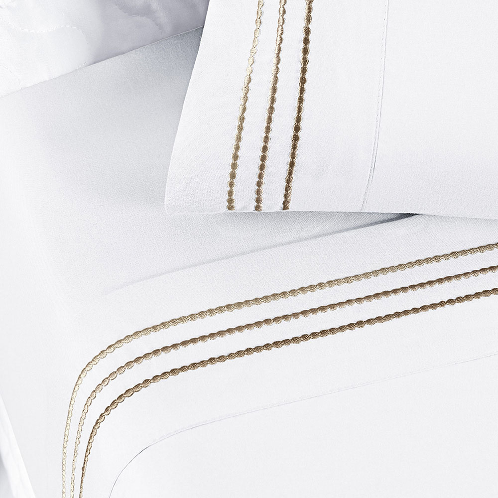 Jogo Cama Lençol Honore Casal Padrão Micro Percal 200 Fios c/ Detalhes Bordados 4 Peças - Branco Neve Taupe