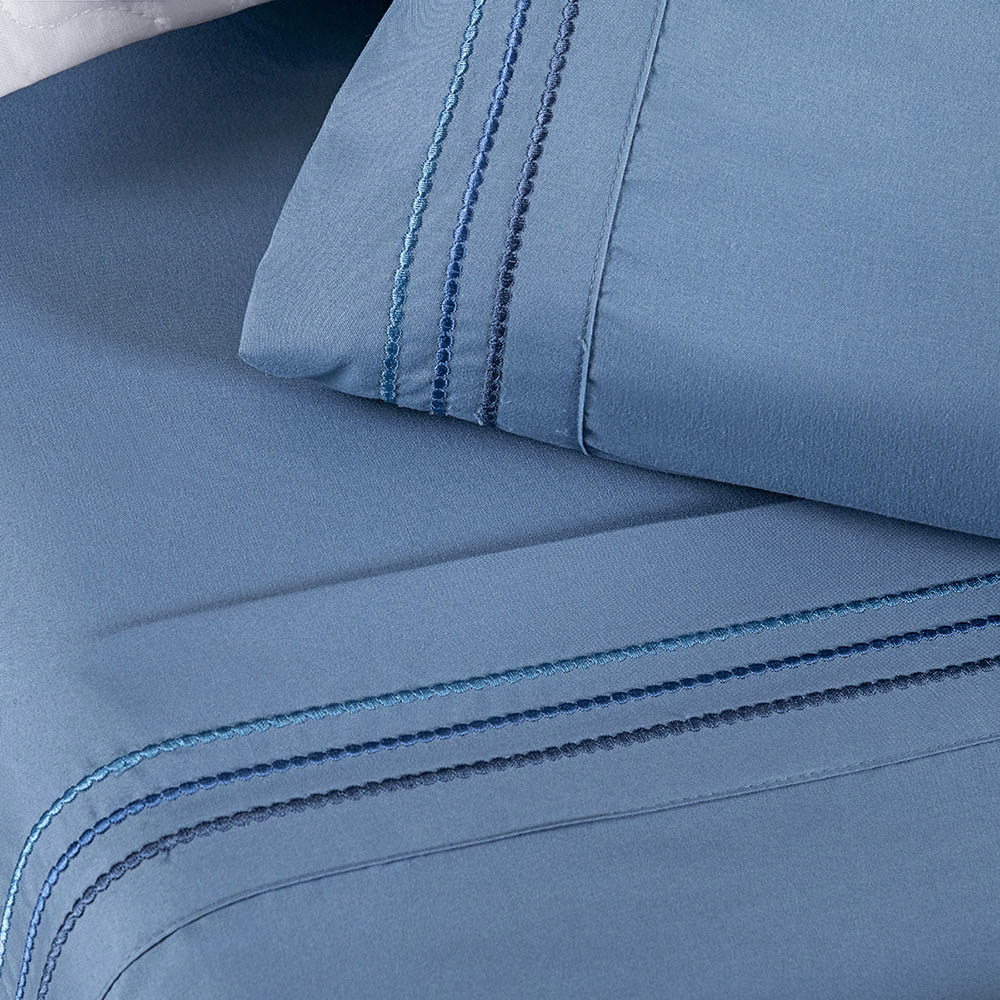 Jogo Cama Lençol Honore Casal Padrão Micro Percal 200 Fios c/ Detalhes Bordados 4 Peças - Azul Ice Blue