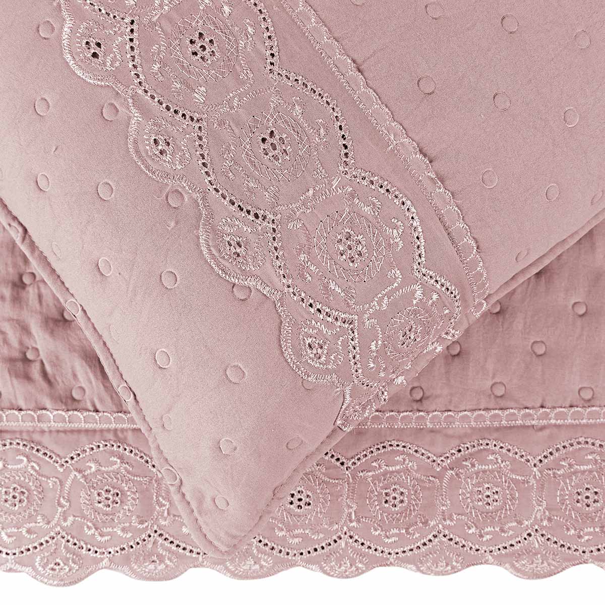 Kit Cobre Leito Colcha Bouclê Casal Padrão Laise Bordada Micropercal 200 Fios 3 Peças - Sal Rosa
