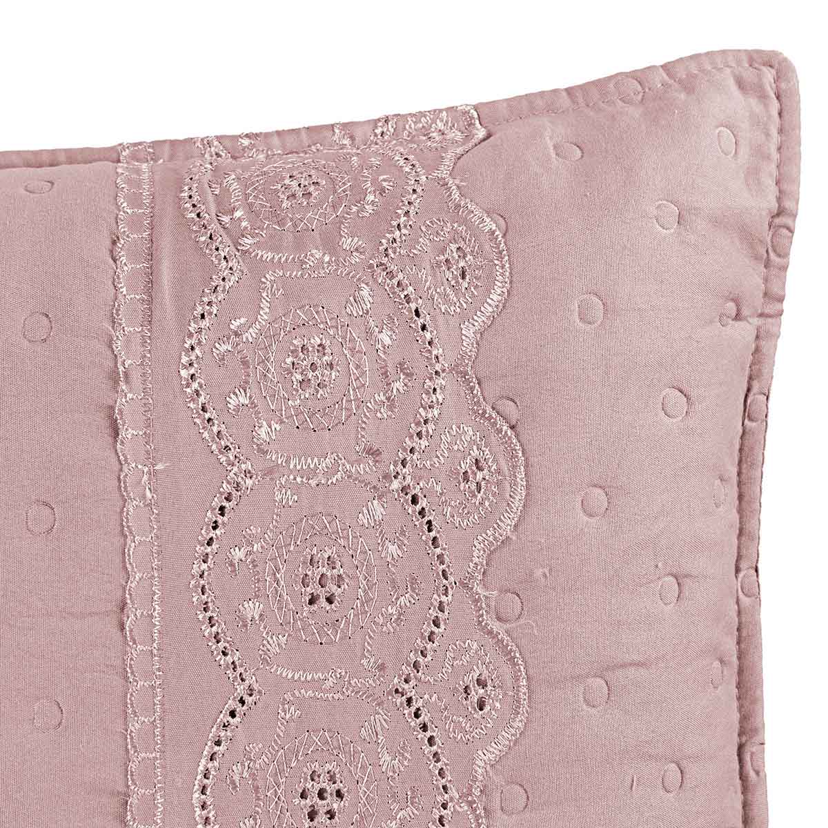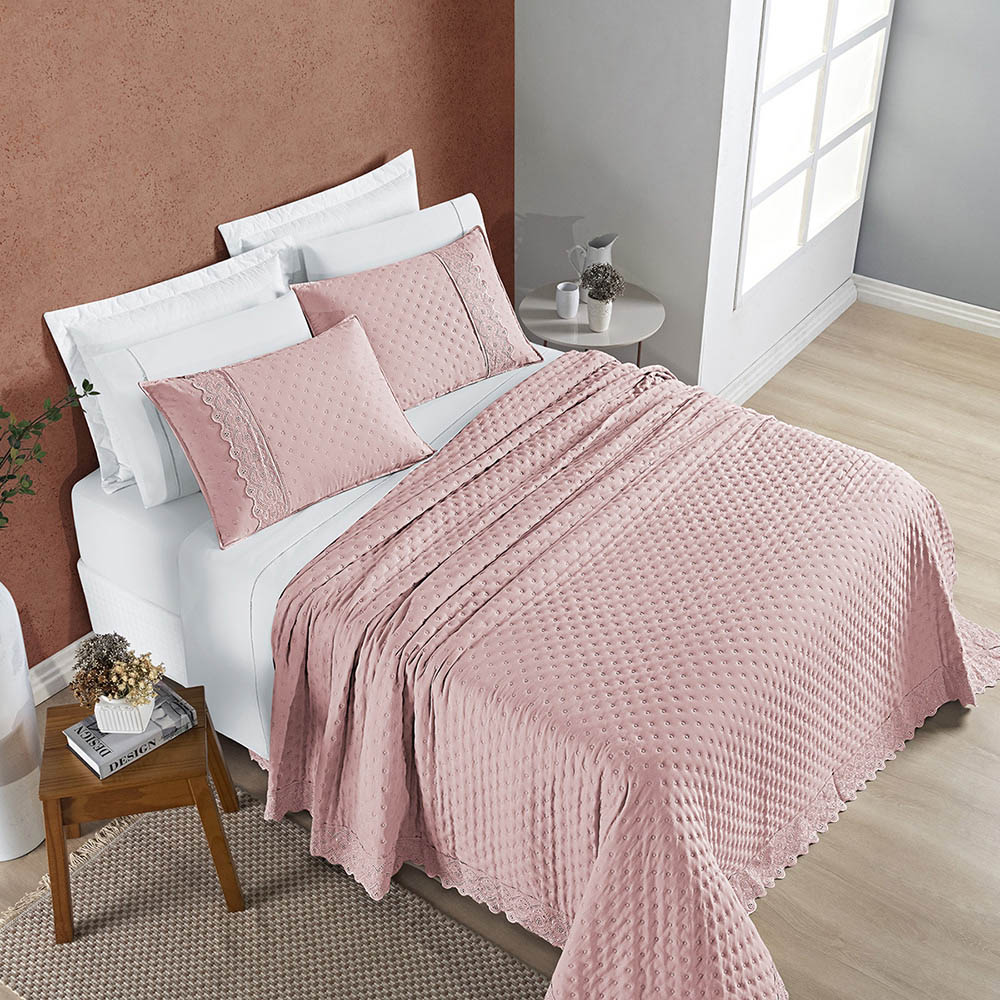 Kit Cobre Leito Colcha Bouclê Queen Laise Bordada Micropercal 200 Fios 3 Peças - Sal Rosa