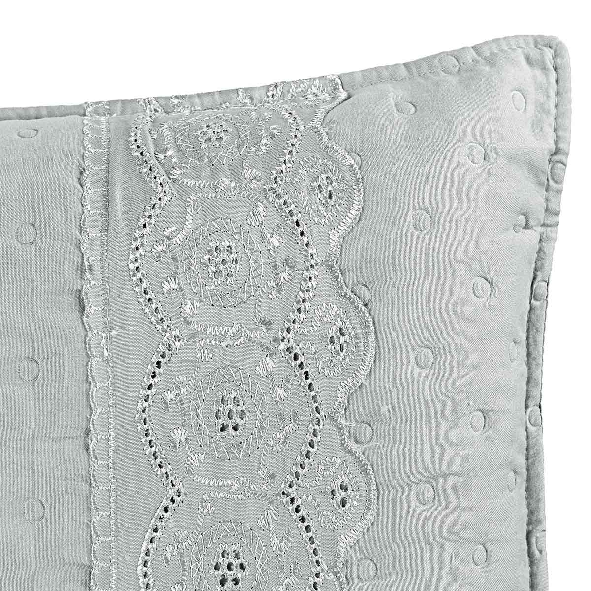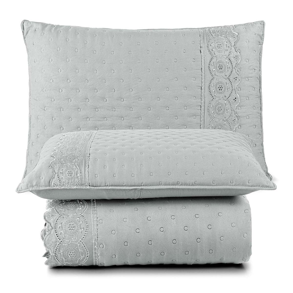 Kit Cobre Leito Colcha Bouclê King Laise Bordada Micropercal 200 Fios 3 Peças - Cinza Geada