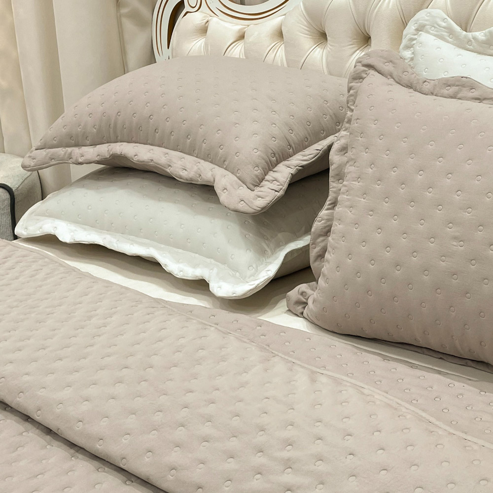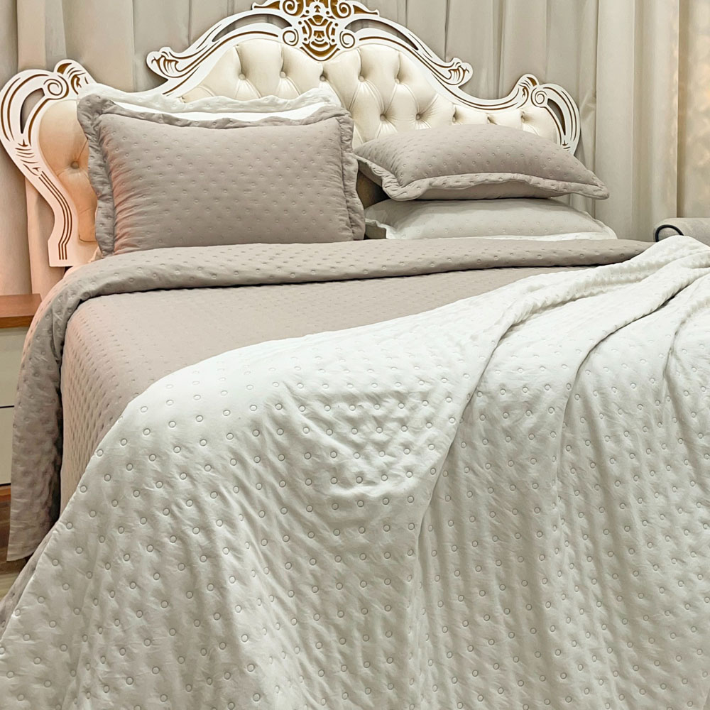 Kit Cobre Leito Colcha Perone King Dupla Face Toque de Pluma Micro Percal 300 Fios 3 Peças - Bege