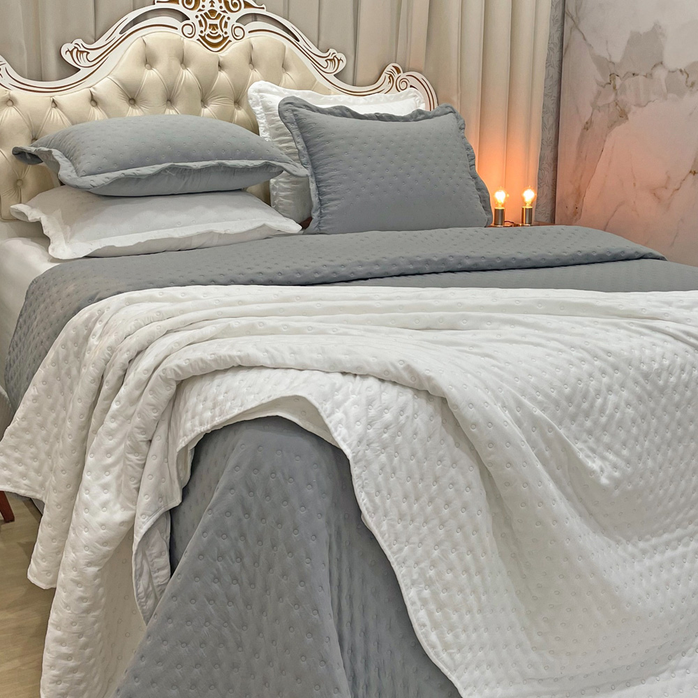 Kit Cobre Leito Colcha Perone King Dupla Face Toque de Pluma Micro Percal 300 Fios 3 Peças - Cinza