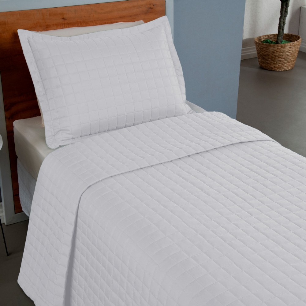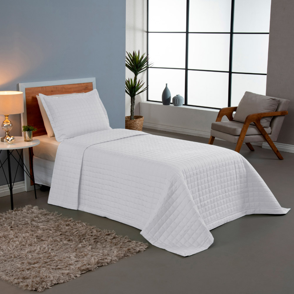 Kit Cobre Leito Colcha Bellini Solteiro Dupla Face Percal 300 Fios Textura Matelassê 2 Peças - Branco
