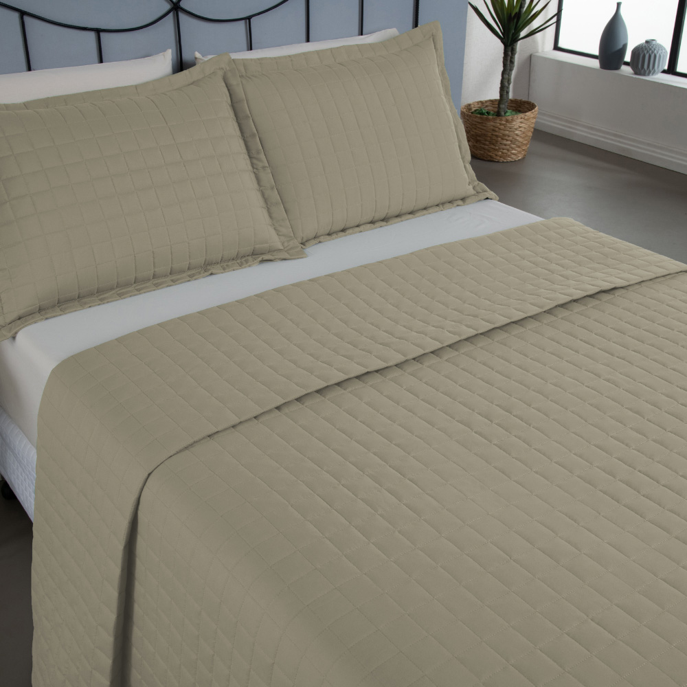 Kit Cobre Leito Colcha Bellini Queen Dupla Face Percal 300 Fios Textura Matelassê 3 Peças - Cáqui