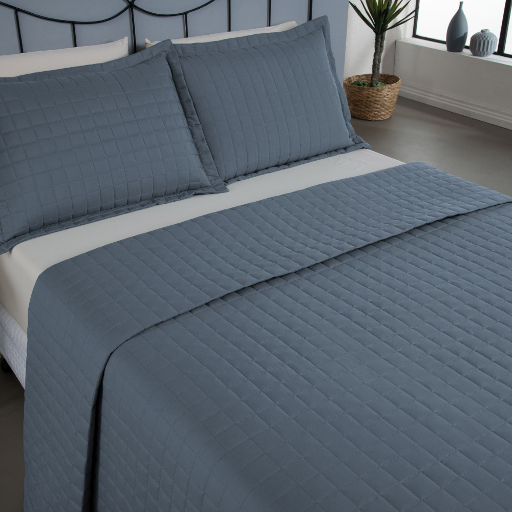 Kit Cobre Leito Colcha Bellini King Dupla Face Percal 300 Fios Textura Matelassê 3 Peças - Azul