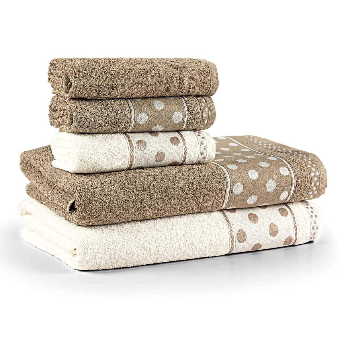 Jogo de Banho Meggy Poá Bolinhas Toalhas Macias 100% Algodão 5 Peças Bege e Pérola