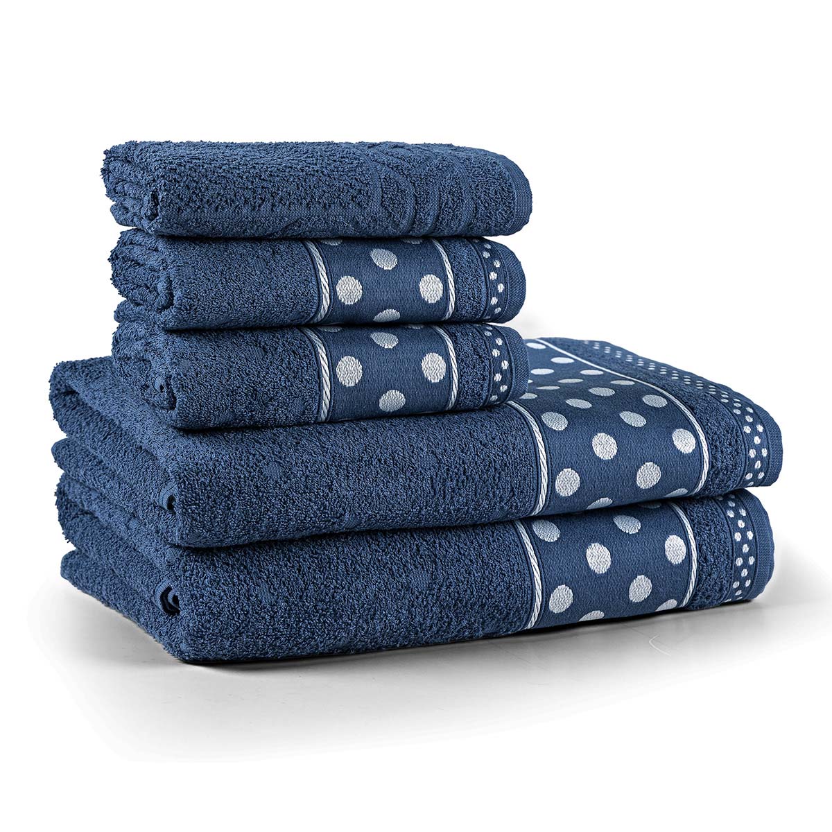 Jogo de Banho Meggy Poá Bolinhas Toalhas Macias 100% Algodão 5 Peças Azul Marinho