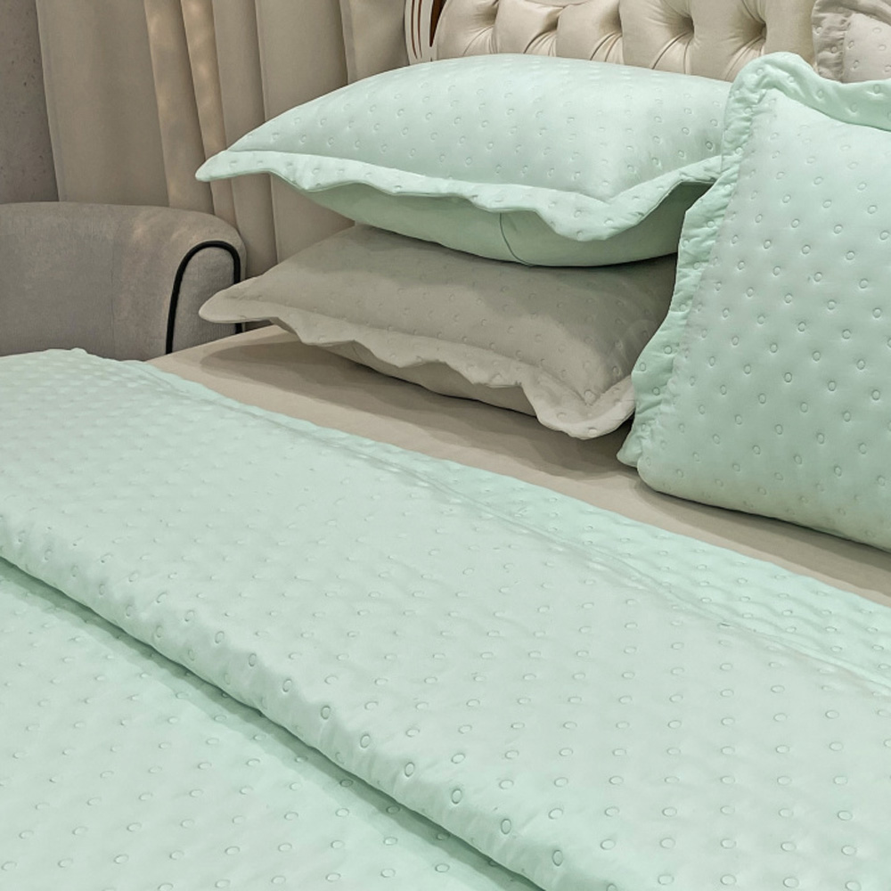 Kit Cobre Leito Colcha Perone King Dupla Face Toque de Pluma Micro Percal 300 Fios 3 Peças - Verde Tifany