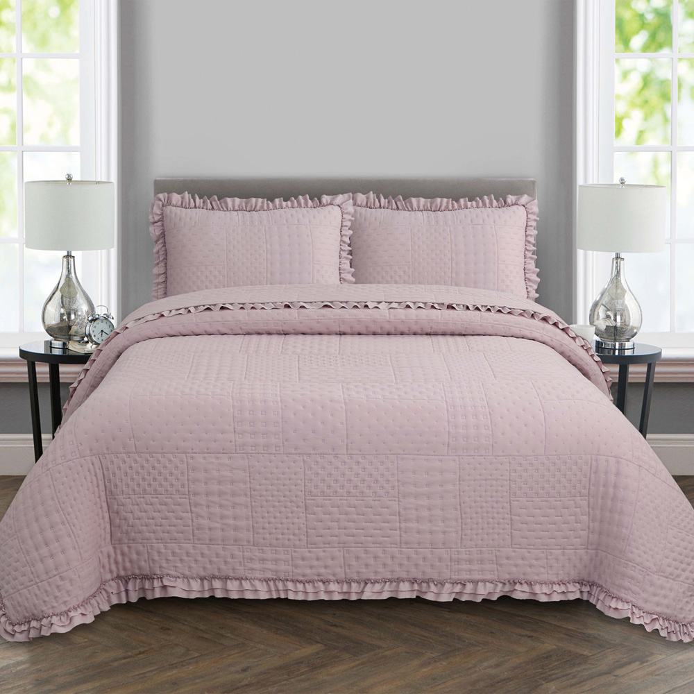 Kit Cobre Leito Colcha Maison Casal Padrão c/ Babado Percal 300 Fios 3 Peças - Roxo Malva