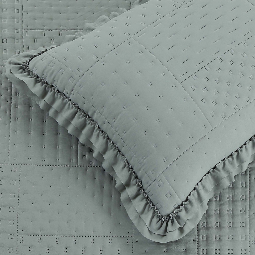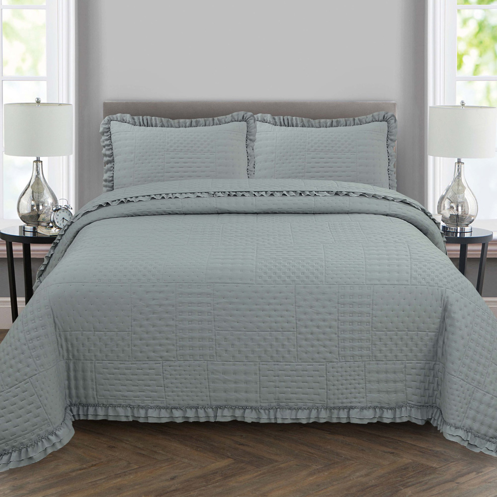 Kit Cobre Leito Colcha Maison Queen c/ Babado Percal 300 Fios 3 Peças - Cinza