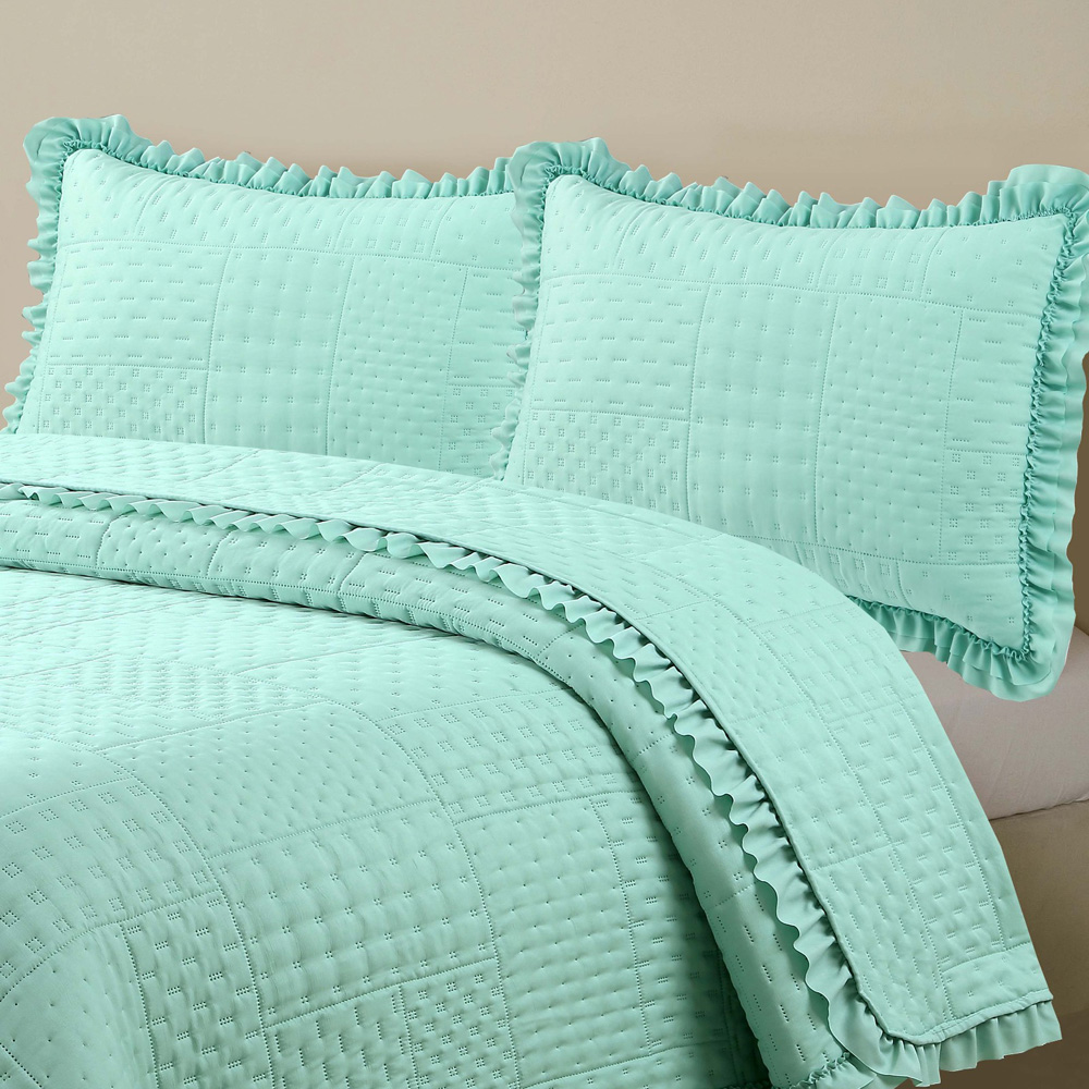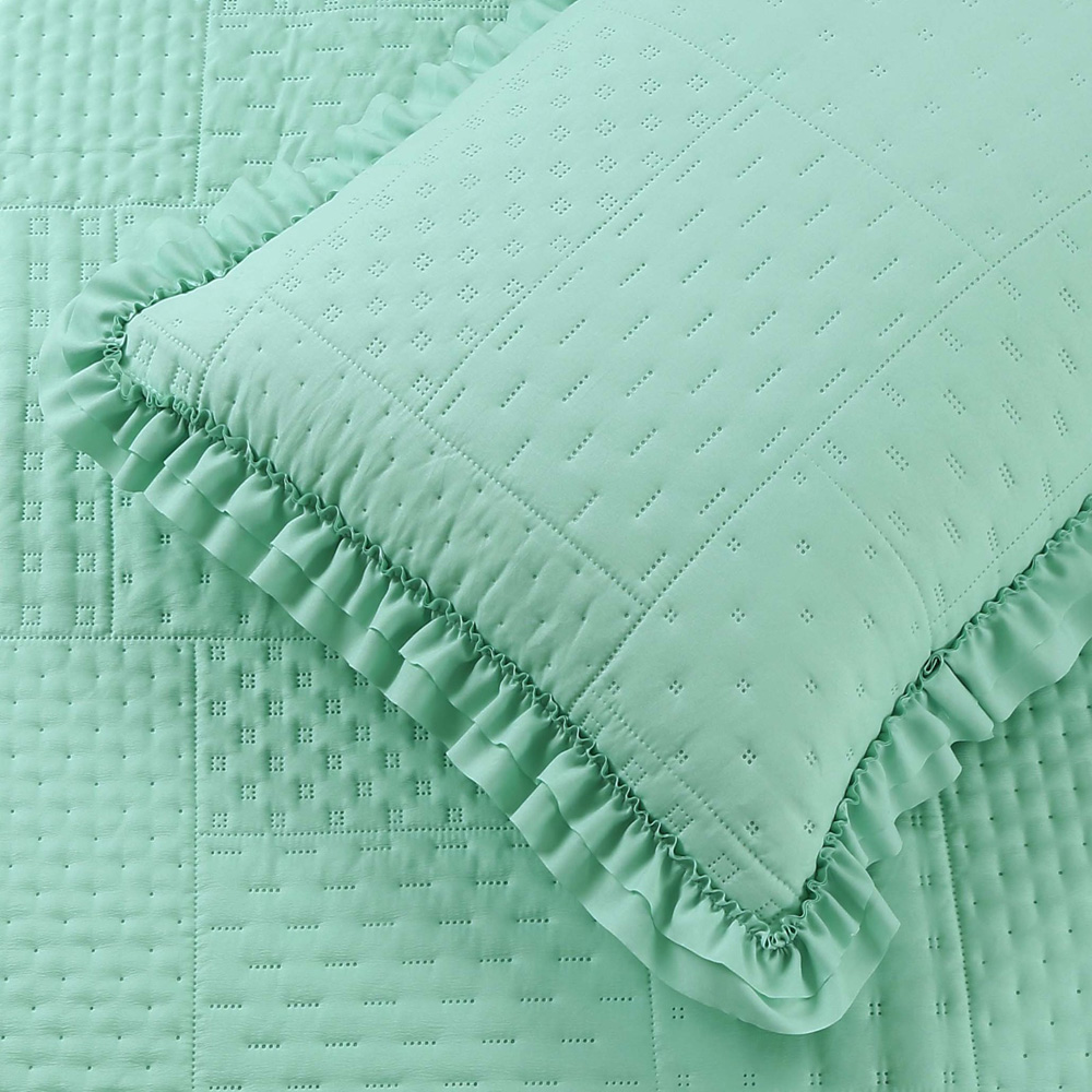 Kit Cobre Leito Colcha Maison Queen c/ Babado Percal 300 Fios 3 Peças - Verde Menta