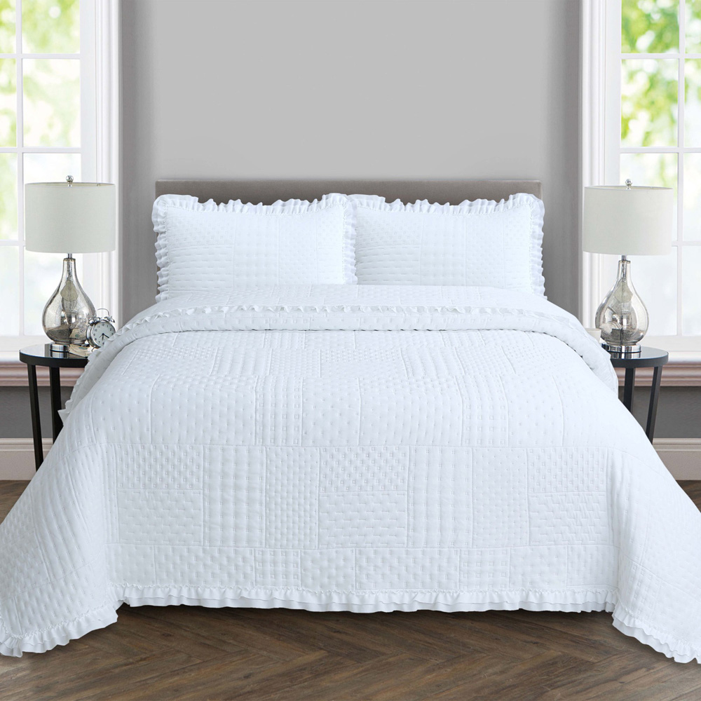 Kit Cobre Leito Colcha Maison King c/ Babado Percal 300 Fios 3 Peças - Branco