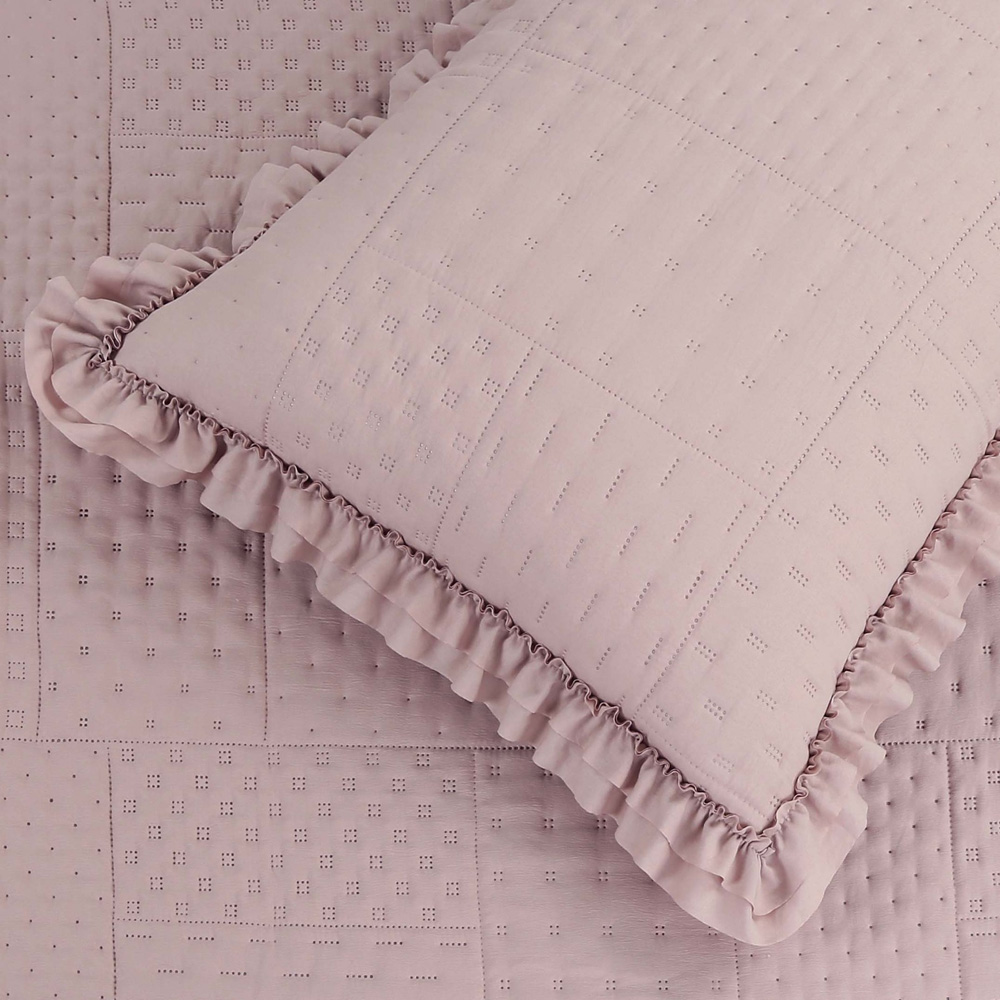 Kit Cobre Leito Colcha Maison King c/ Babado Percal 300 Fios 3 Peças - Roxo Malva