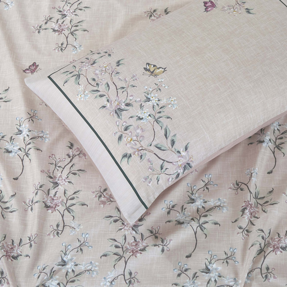 Jogo Cama Lençol Santorini Queen Estampa Florida Percal 300 Fios 4 Peças - Ramos Malva