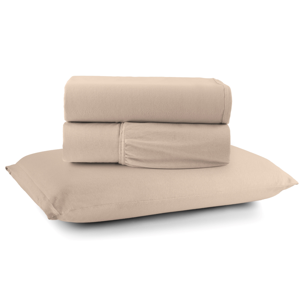 Jogo Cama Lençol Sonnet Solteiro Malha Lisa 100% Algodão Macio 3 Peças - Avelã